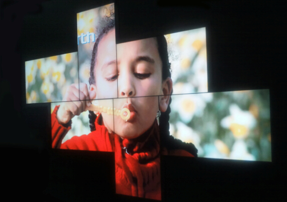 意異形拼接,從字面上理解兩個(gè)詞:“異形”“創(chuàng)意”,其實(shí)就是打破傳統(tǒng)常規(guī)的拼接擺放模式,以任意的顛倒位置,旋轉(zhuǎn)拼接出各種形狀的顯示樣式,有一些特定的場(chǎng)合,比方說(shuō)商鋪的櫥窗 ……